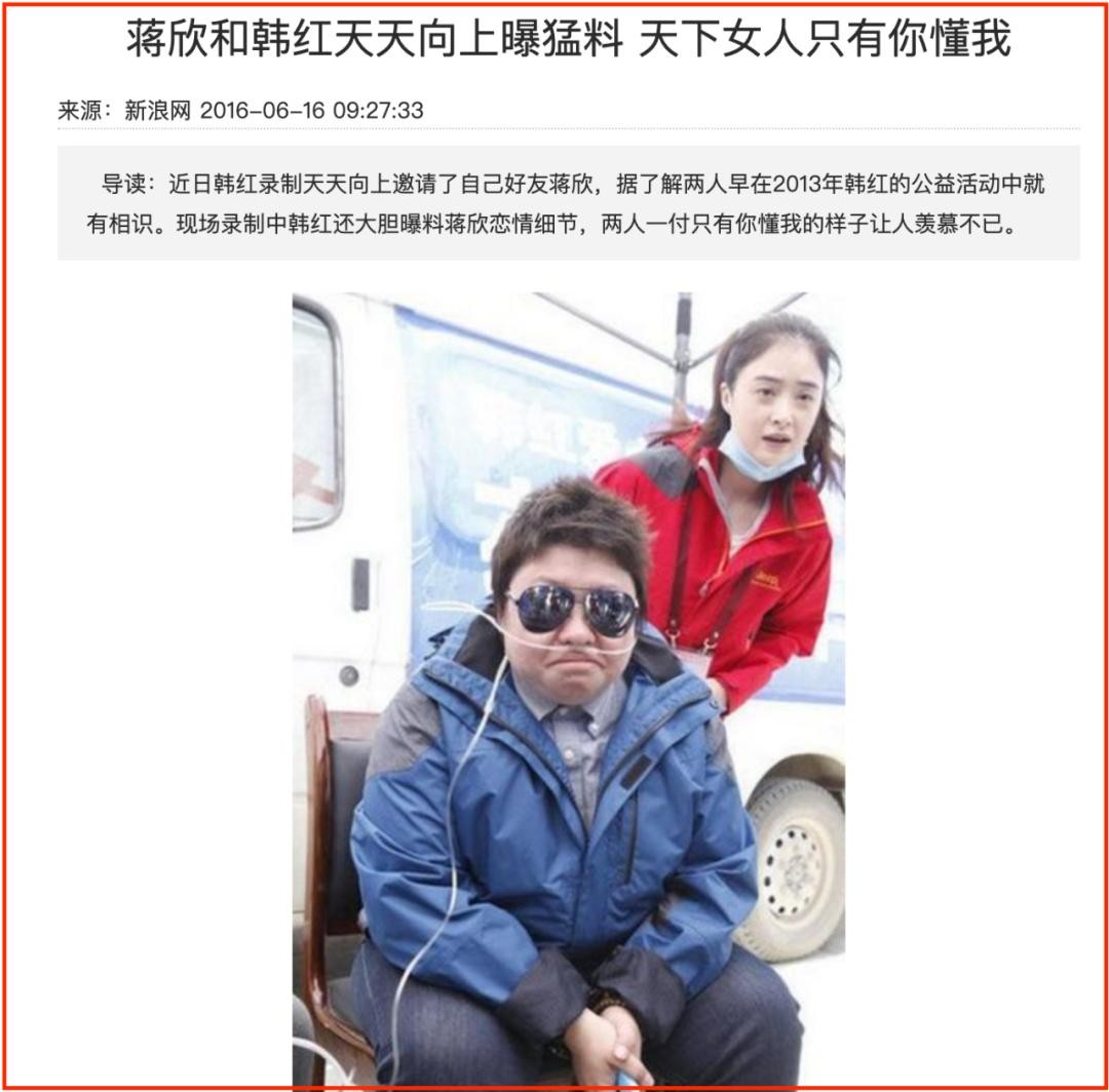 抛开演员的身份,每次韩红做公益的时候,蒋欣总会默默将捐助的款项发给韩红,让韩红感动不已。
