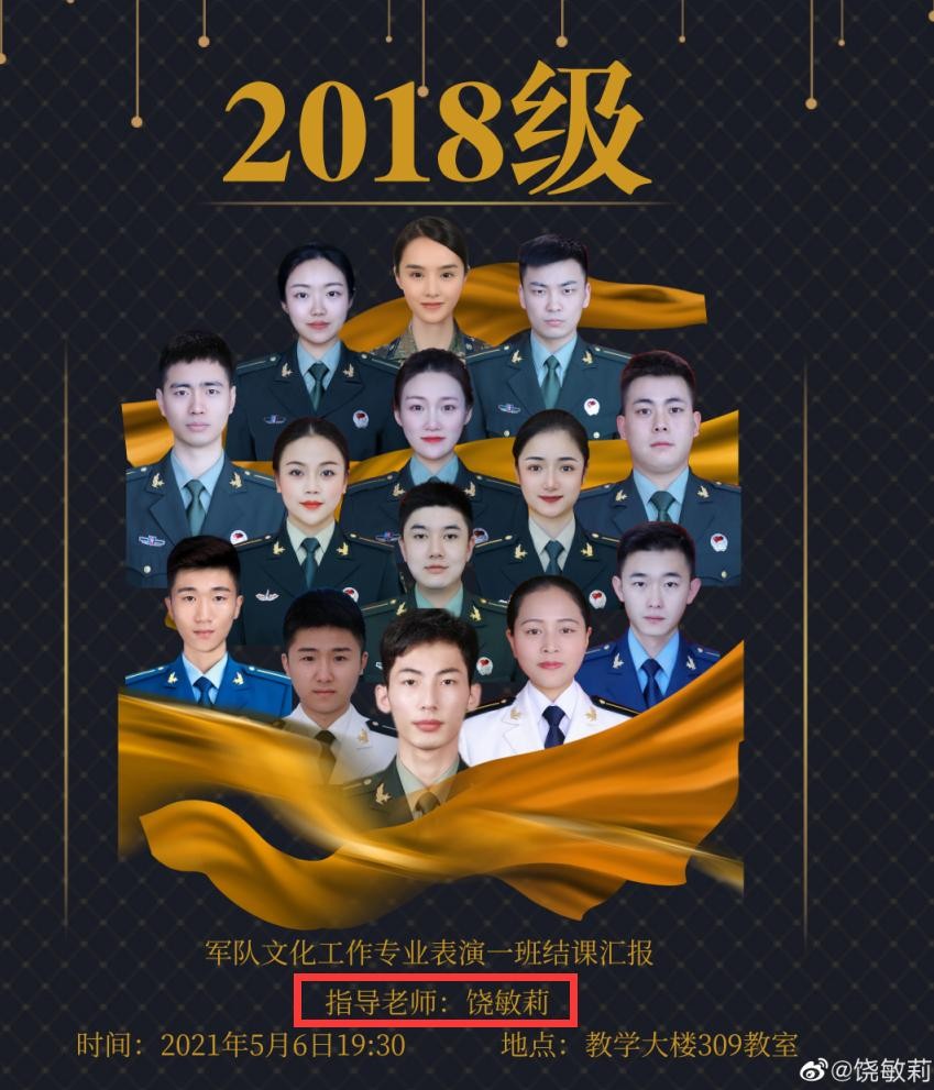 也是在17年,军艺并入国防大学,所以饶敏莉现在是国防大学军事文化学院的一名老师。