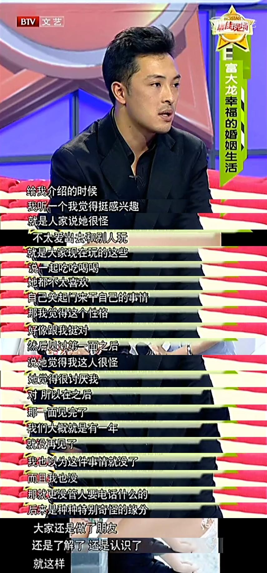 富大龙之前也在节目里透露过他和饶敏莉相识相恋的经过,07年饶敏莉从军艺戏剧系毕业后,就在一位化妆师的介绍下,和富大龙认识了。