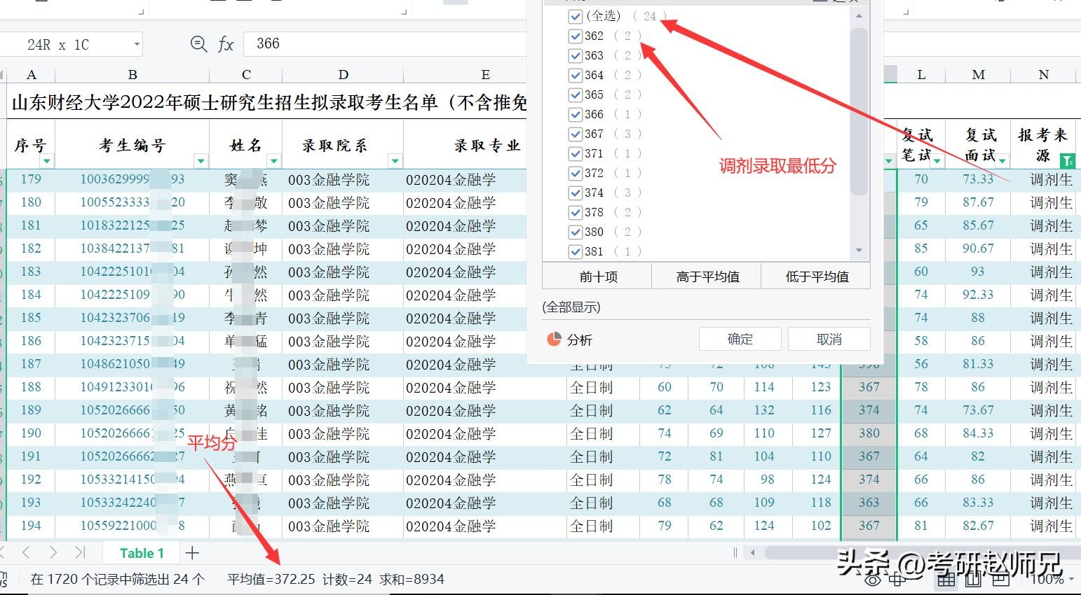 数量经济学22考研一志愿录取2人,其余18人都是调剂,最低分呢360分,平均分369分。