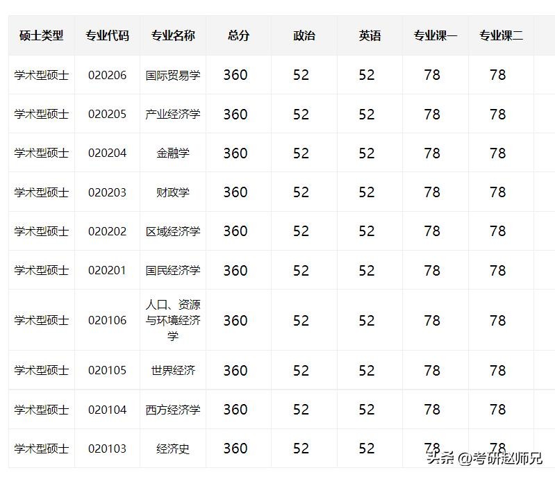 专硕:除了国际商务、税务高以外,其他都是国家线360分,这儿除了审计,前面已经给说过,审计是考管理学专硕,分值都不一样的。
