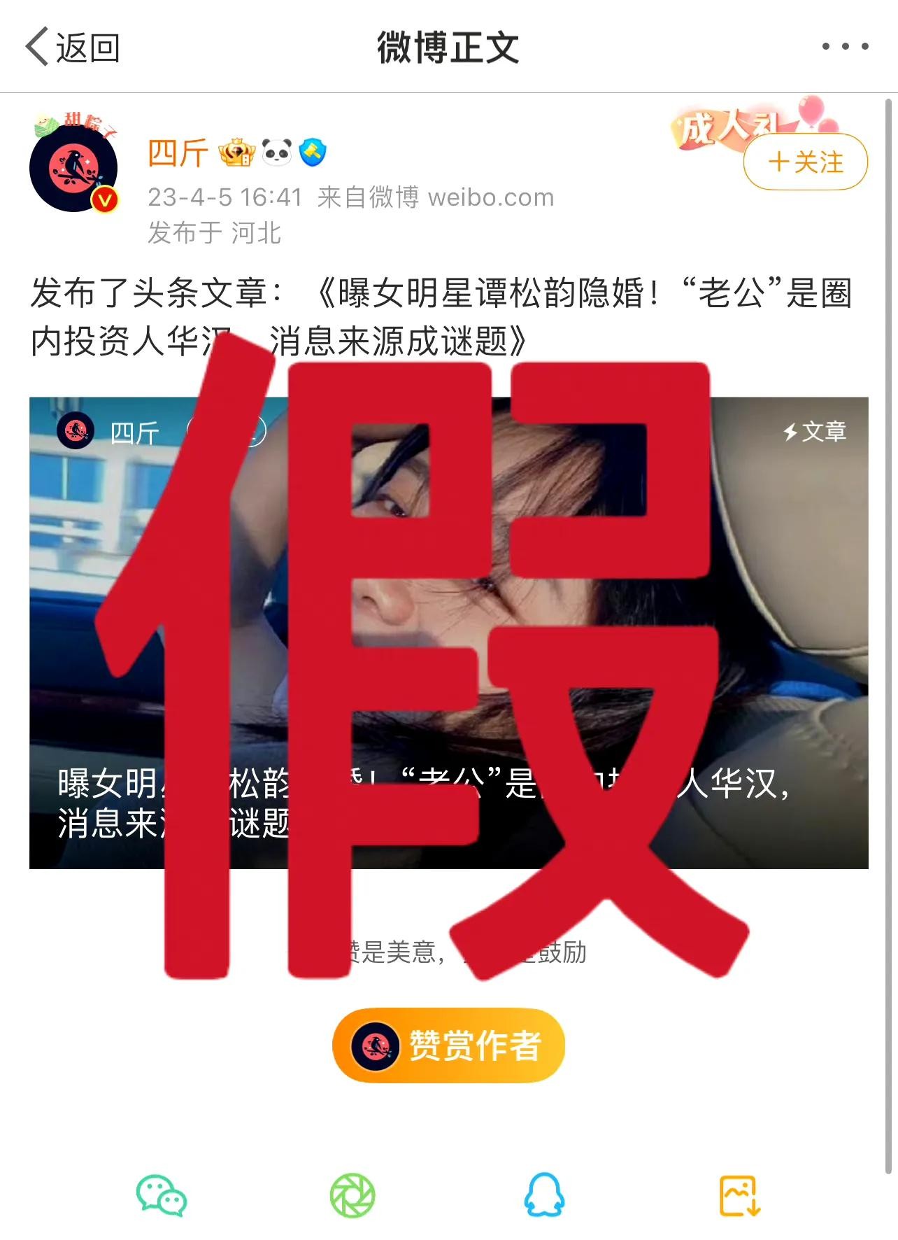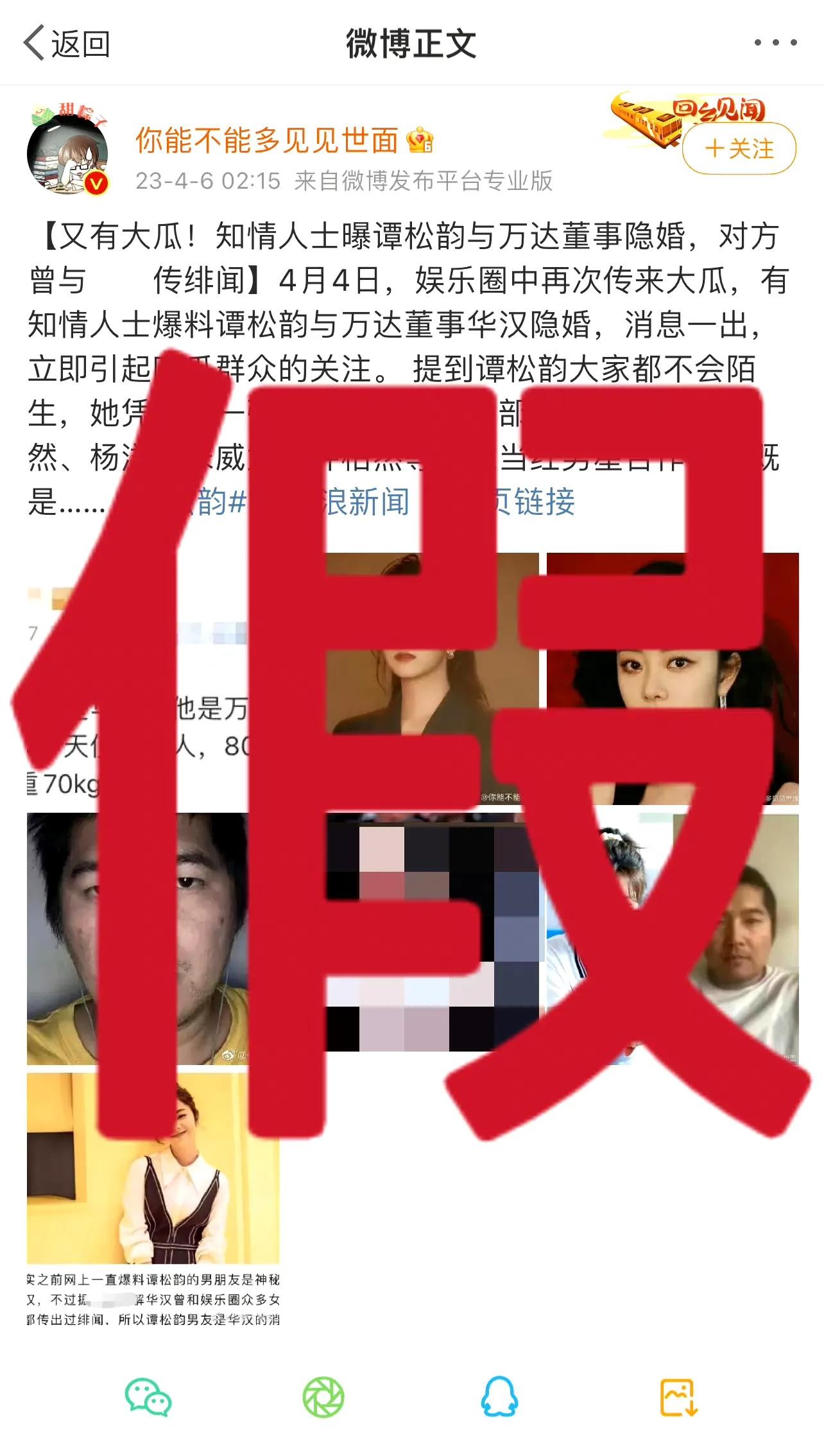 谭松韵方晒出网传的文章截图,称:“假到离谱!谭女士目前未婚且单身!切勿造谣传谣!”