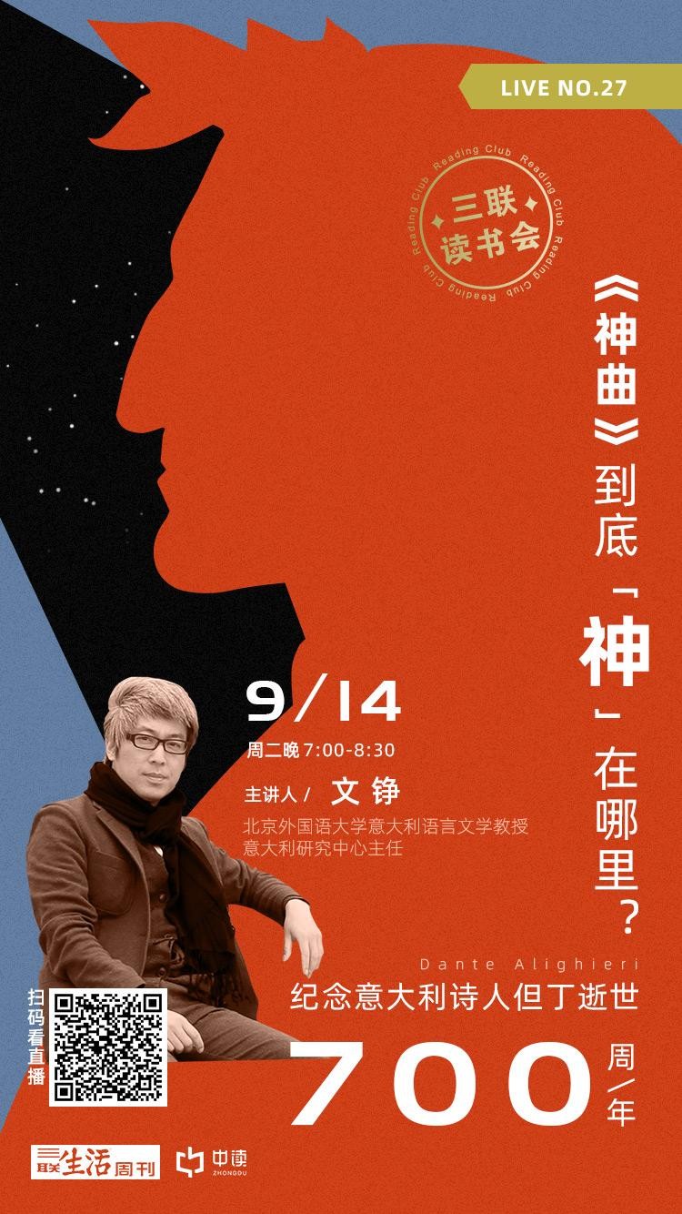 “三联读书会”直播间在9月14日但丁逝世700周年纪念日这一天,邀请到了北京外国语大学欧洲语言文化学院教授文铮老师与大家一起聊聊但丁和他伟大的作品《神曲》。