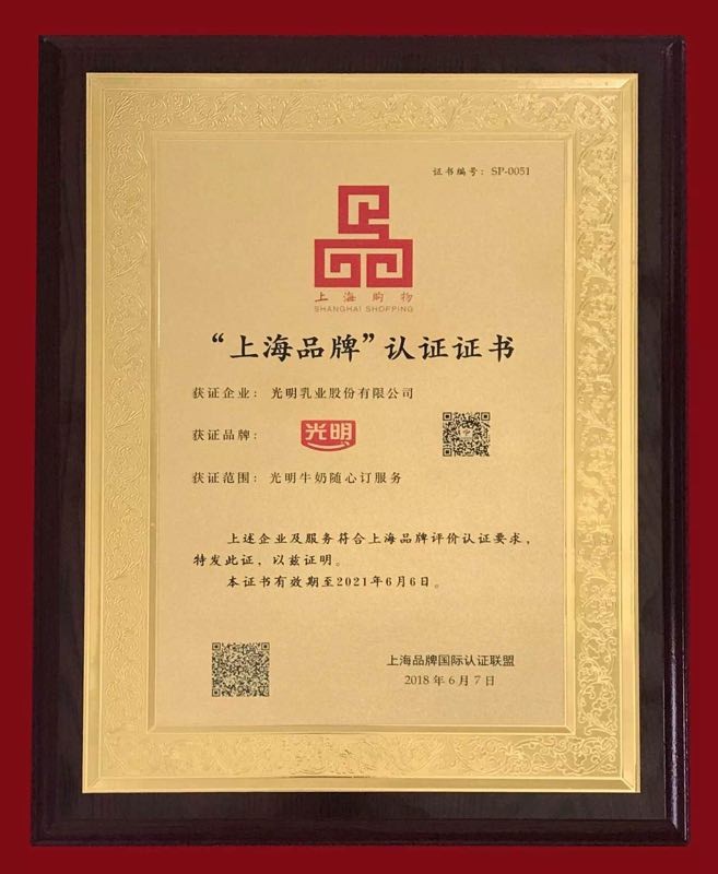 本次“上海品牌”认证制度采用国际通行的合格评定方式,由获得CNAS认可的第三方认证机构对产品和服务依据标准进行市场化的评价。认证定位于“国内领先、国际一流”,塑造品质卓越、技术领先、管理科学的自主品牌形象,全力打响“四大品牌”和“上海标准”。认证汇聚沪上众多“金字招牌”,光明乳业成为食品企业“独一份”。