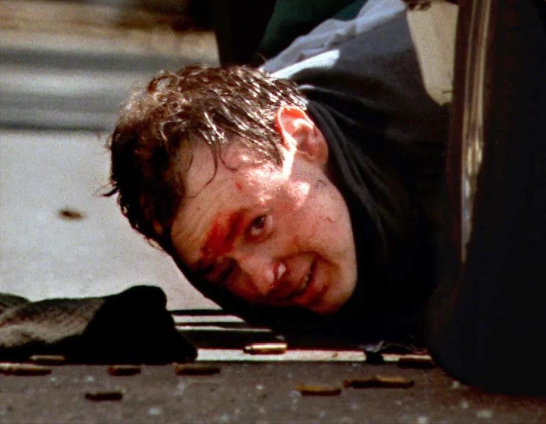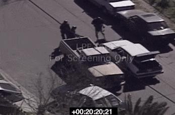 双方交战了4分钟后,就有7名警员受伤,3名路人中弹,连直升机也被迫远离现场,飞到了五百米之外的高空。