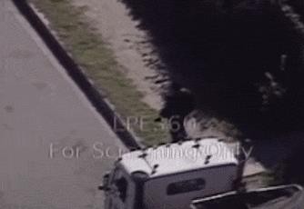 看到两人准备逃离,警方装甲车开道,对着两人火力围堵。
