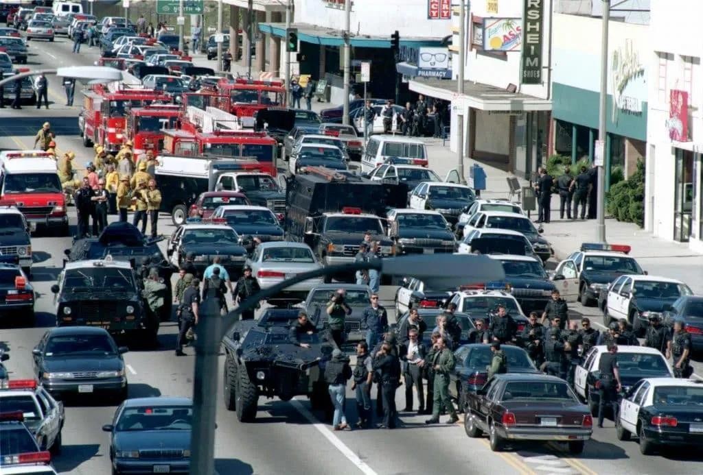 但是在1997年的美国洛杉矶,却爆发了一起美国史上最凶悍的银行抢劫案,两名劫匪和300余名警察交战了44分钟,双方共伤亡16人,打掉了2000多发子弹,甚至在最后关头,警方把子弹打空了,还不得不临时去枪店买枪。