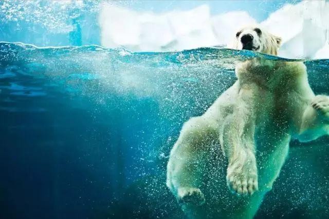 观赏企鹅从陆地冰雪世界“扑通”跃入水中