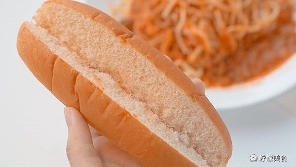前段时间日本的“炒面热狗”不是被捧得很火嘛,于是我模仿了一下,做成【意大利面热狗】。