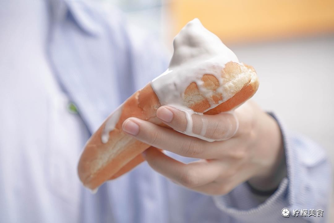 创新吃法就是把甜筒捏碎,用酥脆的甜筒皮挖着吃,连着可颂一口下去,有种吃冰淇淋泡芙的感觉呢。
