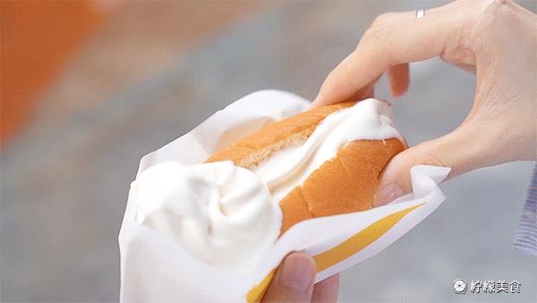 我习惯的吃法是洗干净双手,把面包掰下来蘸着雪糕吃,现烤的温热面包+冰淇淋,冰火两重天的感觉太爽了!