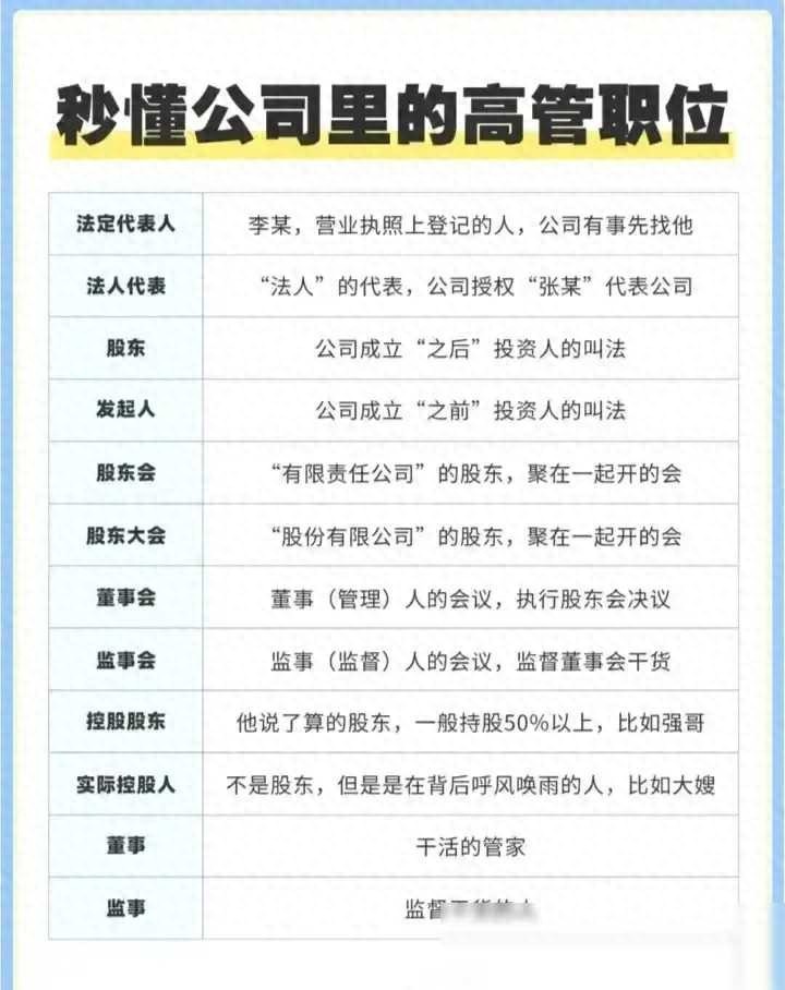 通过这样的解释和对话,相信大家对公司高管职位有了更清晰的了解。在工作中,了解这些职位的职责和权责可以帮助我们更好地理解公司的运作机制,为个人职业发展制定更明确的目标和计划。
