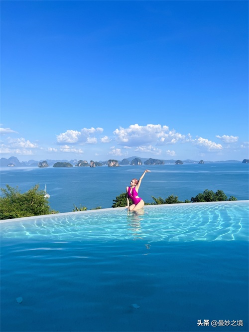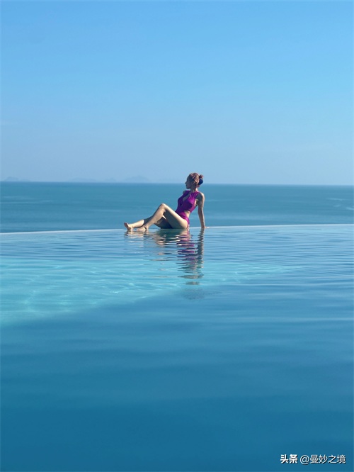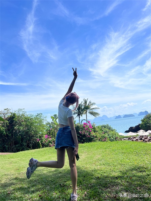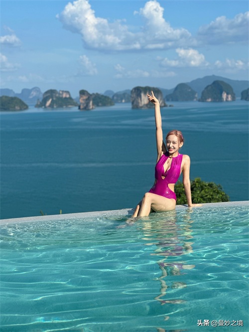 这组粉色泳衣照也太辣了吧!虽然没有太多的近景图,但也能感受到程潇的美丽和。蓝天白云大海美人,简直就是浑然天成的一幅画。