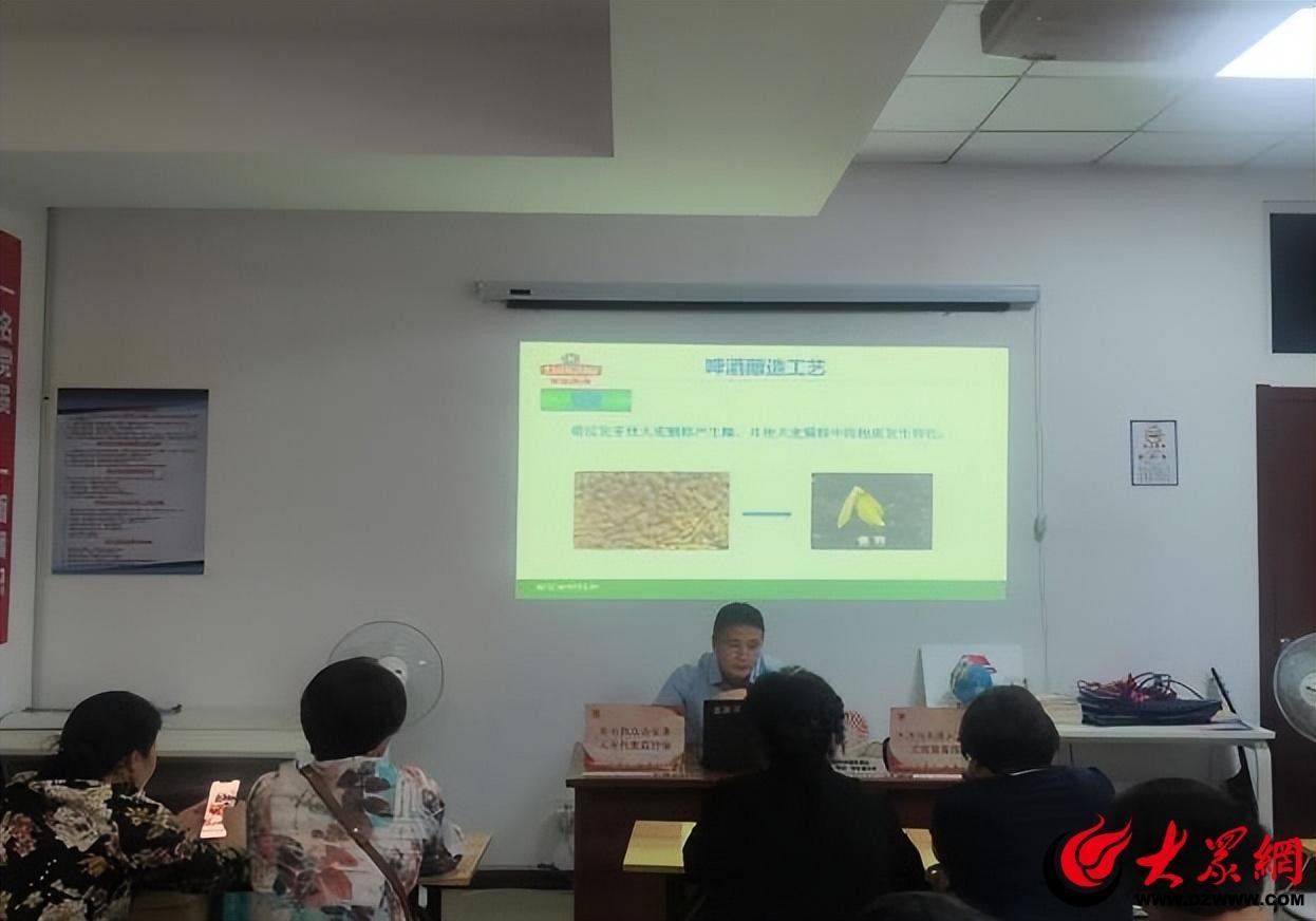 拥有百年历史的青岛啤酒,代表了青岛百姓的家乡情怀,更代表了“红瓦绿树、碧海蓝天”的文化生活。佳节在即,团圆饭桌怎能少了啤酒?青岛市人大代表、青岛啤酒厂酿造部工段长柳建厚围绕自身所长,以《一朵幸福花,酿出中国味》为题,向大家科普了酿造啤酒的重要原料——啤酒花,又以《只此青绿,碳赢未来》为主题,向大家讲解了青岛啤酒的废水利用碳中和为国家双碳发展贡献力量的故事。活动现场,柳建厚还邀请居民与啤酒博物馆内经典全息互动影像—“旗袍美女”一起比画“共饮”的手势,完成跨越百年的“对话”。在场的居民参与热情高涨,讨论氛围热烈,纷纷向柳建厚提问啤酒酿造知识,柳建厚耐心倾听、热心解答、真诚服务。“我们平时都爱喝青岛啤酒,但啤酒究竟是怎么生产出来的,通过市人大代表的讲解,算是第一次弄明白。”南丰路社区居民孙先生说。