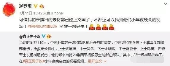 娱婆还注意到一个怪异的现象,一些网友在传播消息的过程中将牺牲烈士的名字错打成杨树鹏(张歆艺前夫),更有甚者还跑到人家的微博底下悼念点蜡烛,真不知道这些人连牺牲的人是谁都没搞清楚还瞎跟什么风,尴尬又丢人。
