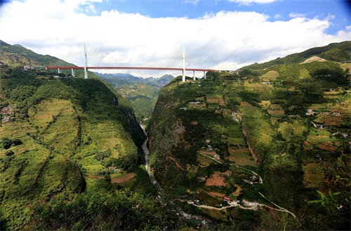 北盘江大桥,原称尼珠河大桥,位于云贵两省交界处,世界第一高桥,是杭瑞高速贵州省毕节至都格镇公路的三座大桥之一,由贵州高速公路集团有限公司管理。
