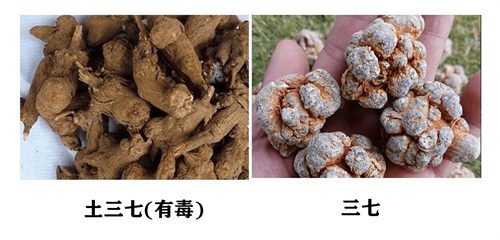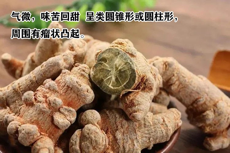 【鉴别】呈类圆锥形或圆柱形;周围有瘤状凸起;气微,味苦回甘;一定要与土三七区分开来,土三七有毒对人体危害大。