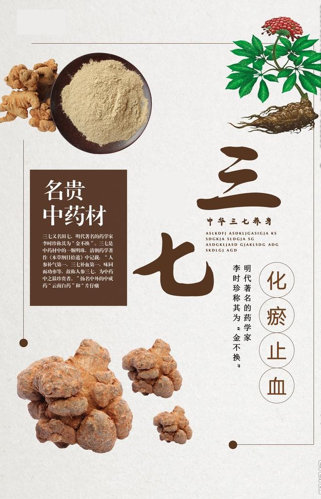 【功能功效】三七具有散瘀止血、消肿定痛等功效