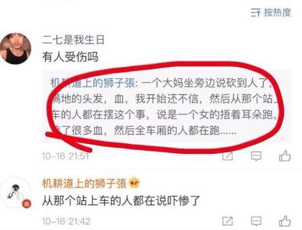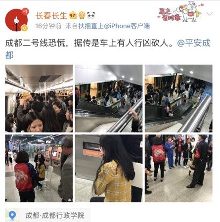 10月16日晚间,有网友在社交平台发布消息,称成都地铁二号线恐慌,据传是有人行凶砍人。消息同时配发了多张图片。