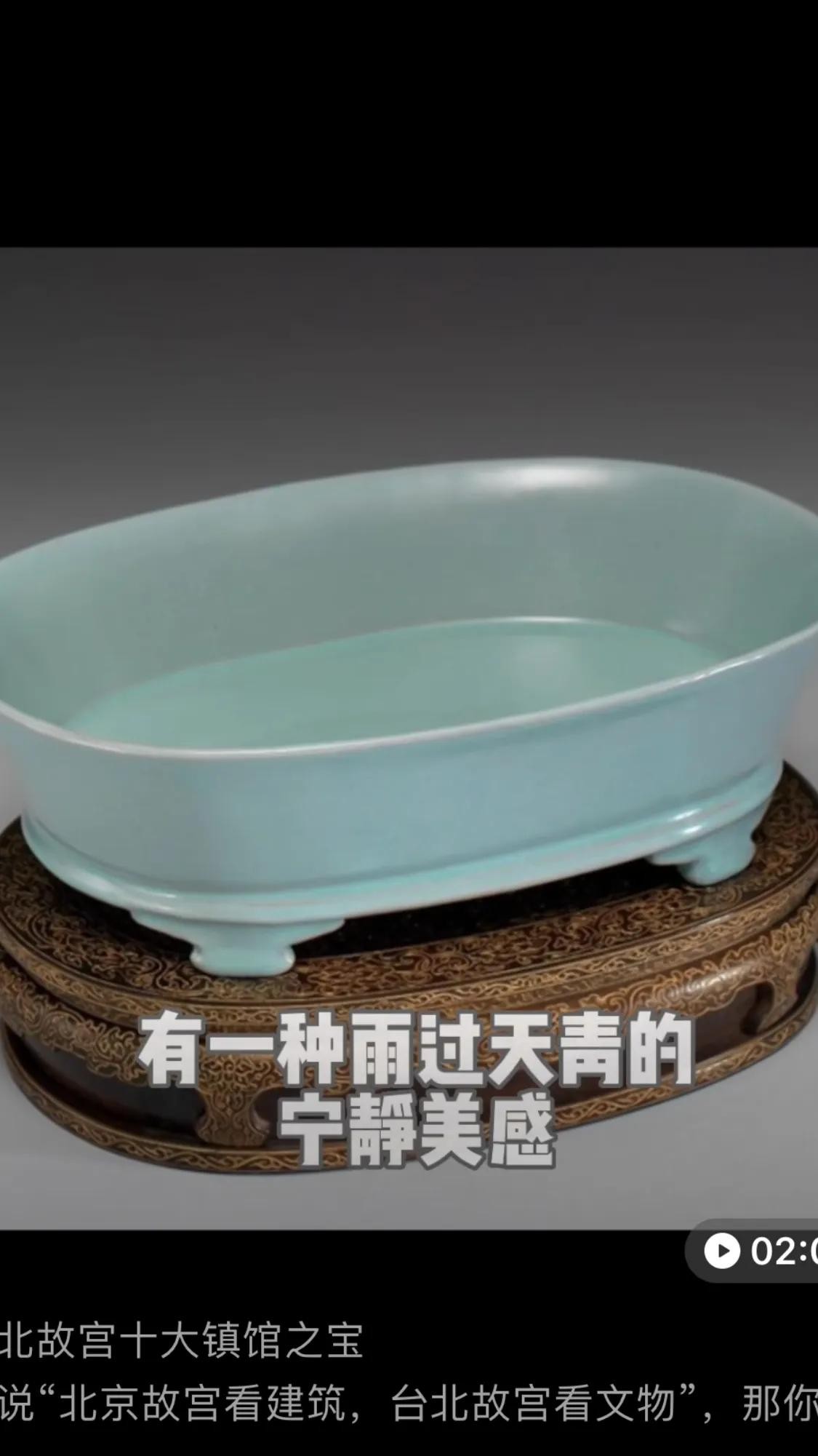 汝窑天青无纹水仙盘:北宋宫廷御用瓷。