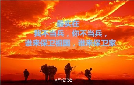 新年度的征兵已经可以网上报名了,而对于为什么来部队,很多人都有话说。小编这里就收集了几个为什么来当兵的理由,围观的同时,一起来聊一聊小伙伴们当初面临入伍时的心情吧!(来源:解放军报法人微博 作者:张晓君)