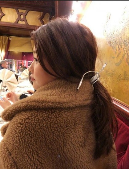 如果散着头发出门,吃饭时却忘了带橡皮筋怎么办呢?孙怡给我们示范了机智操作,用数据线。真是真性情!
