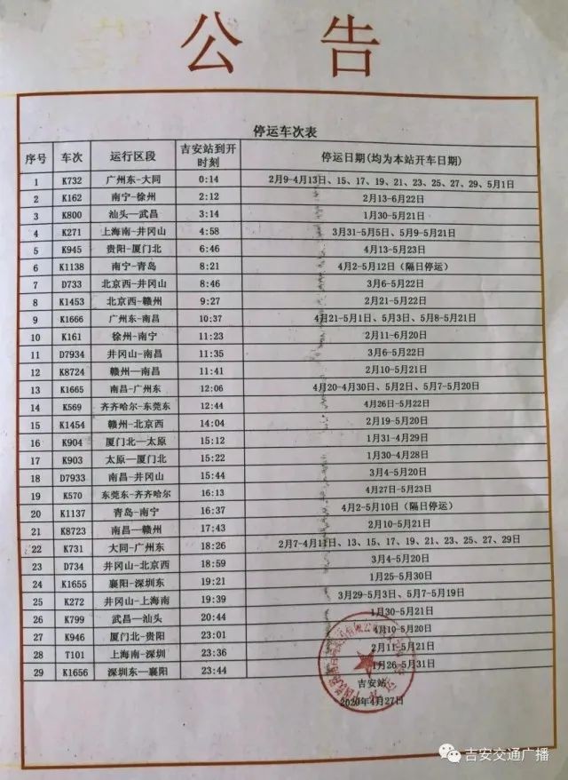 具体车次有:K732、K162、K800、K271、K945、K1138、D733、K1453、K1666、K161、D7934、K8724、K1665、K569、K1454、K904、K903、D7933、K570、K1137、K8723、K731、D734、K1655、K272、K799、K946、T101、K1656。