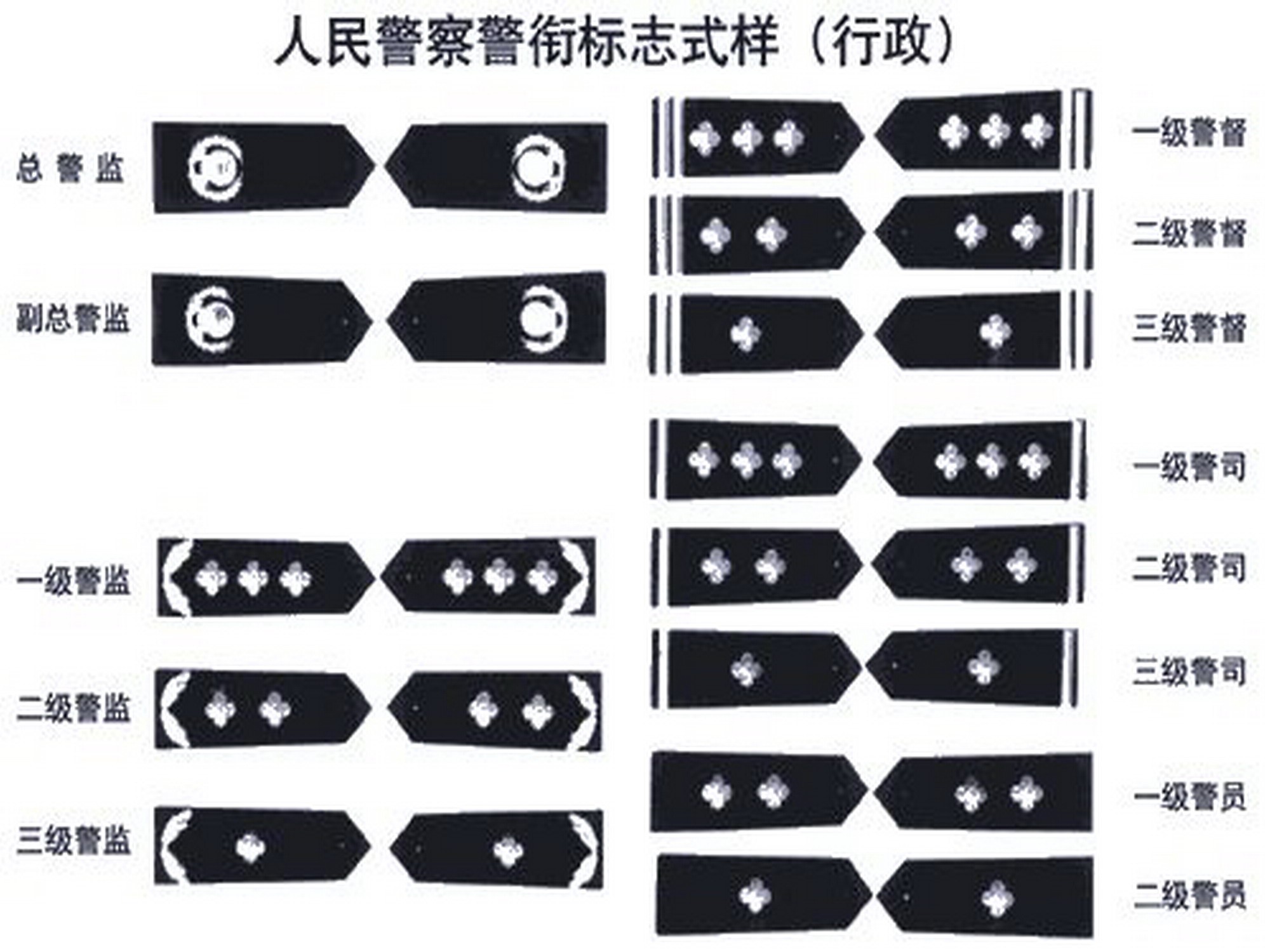 前面重点讲过的一级警监可以对应解放军里的正师级大校,二级警监则对应副师级大校,三级警监可对应正团级的上校,以此类推,就不过多阐述了。