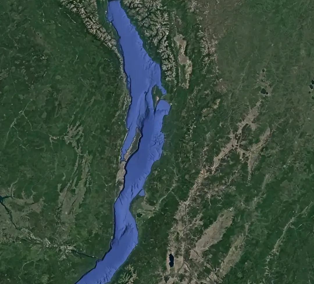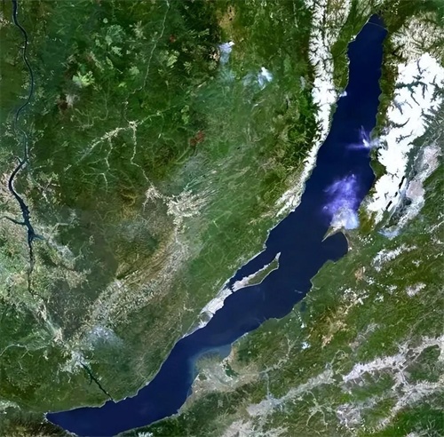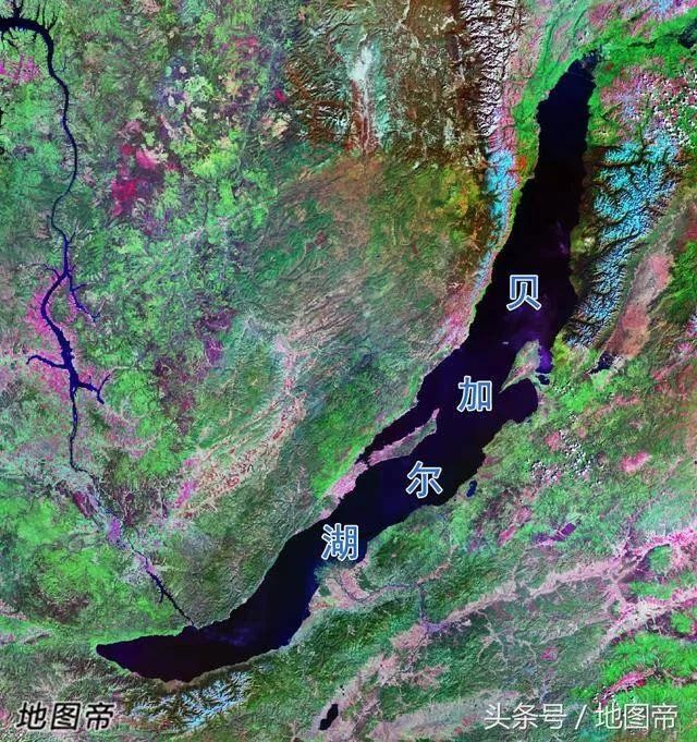 图12,地质探测卫星拍摄的贝加尔湖位置。