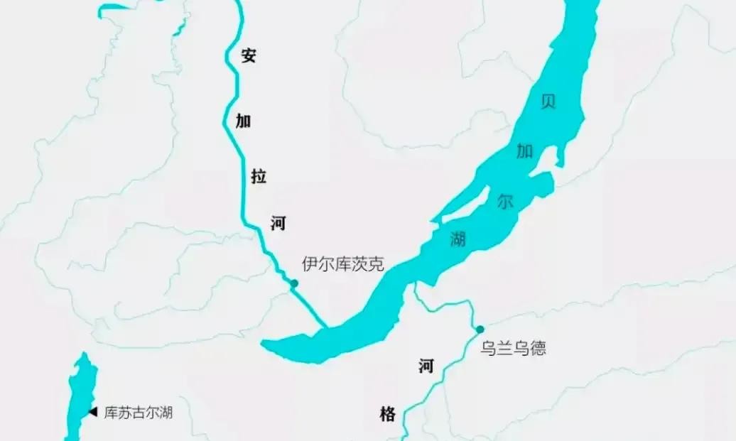 图25,贝加尔湖、安加拉河、库苏古尔湖示意图。