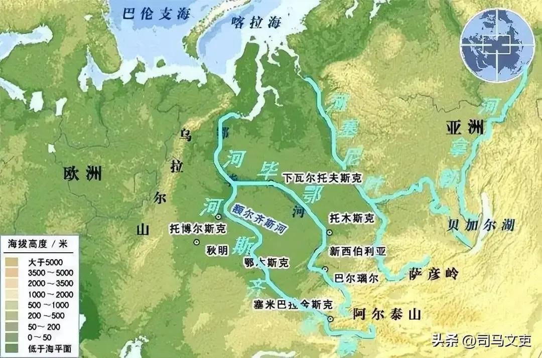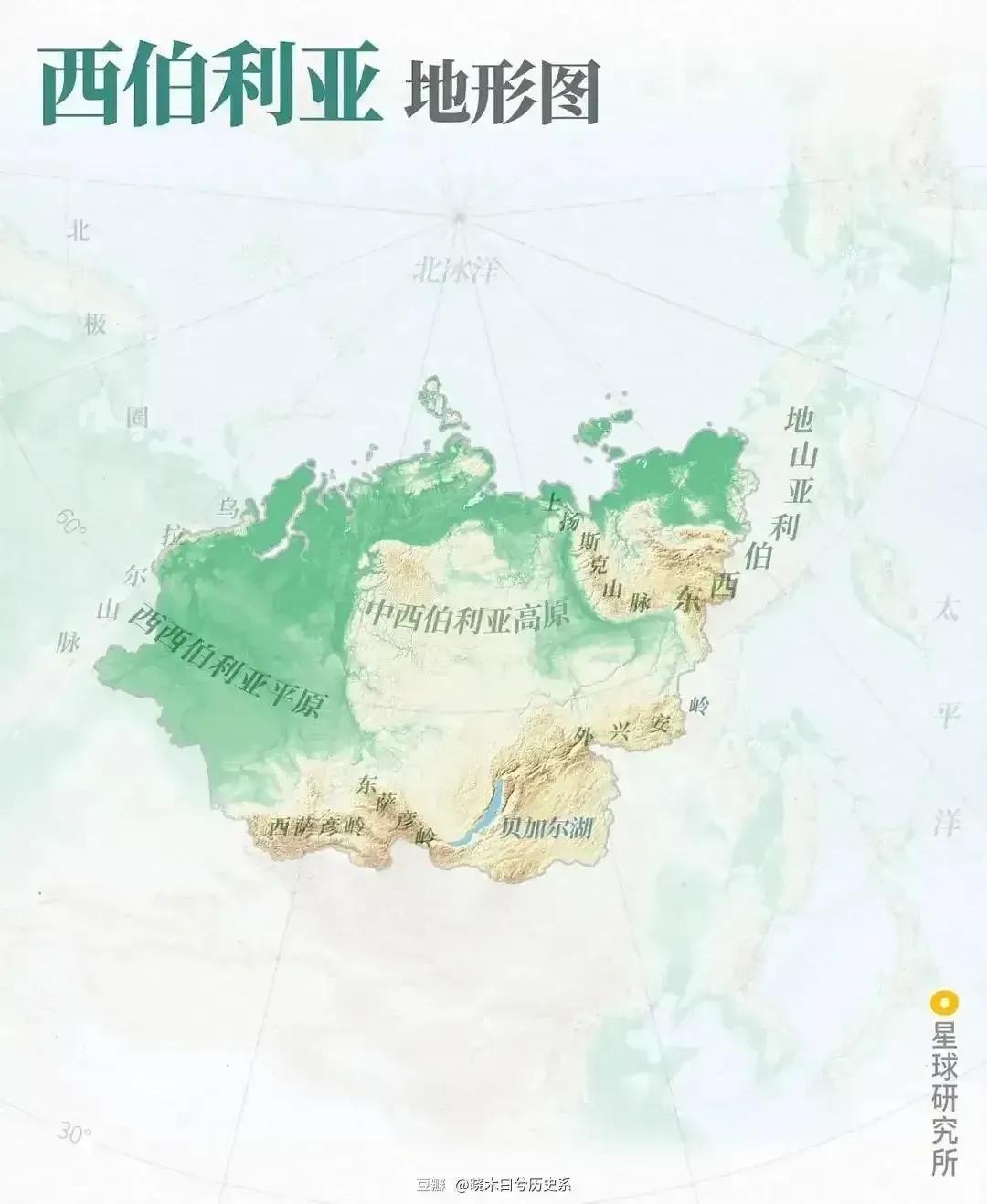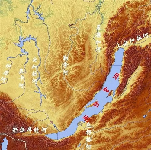 图9,西伯利亚地形图。贝加尔湖位于中西伯利亚高原南麓,西边是东萨彦岭,东边是外兴安岭。