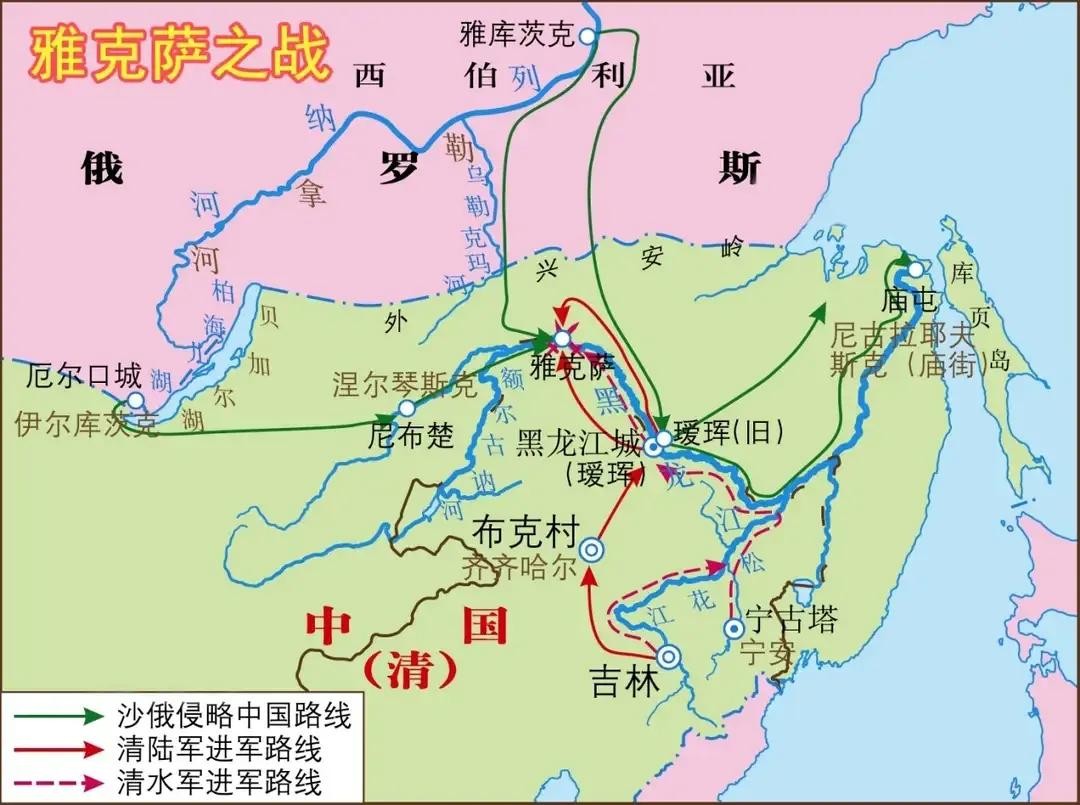 图58,雅克萨之战时,贝加尔湖北岸是中俄疆界。