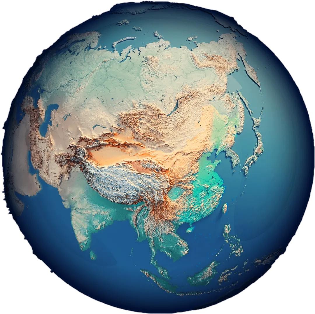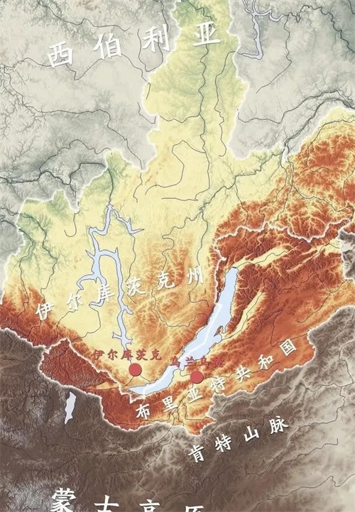 图6,贝加尔湖周围以及蒙古高原地形示意图(凹凸版)