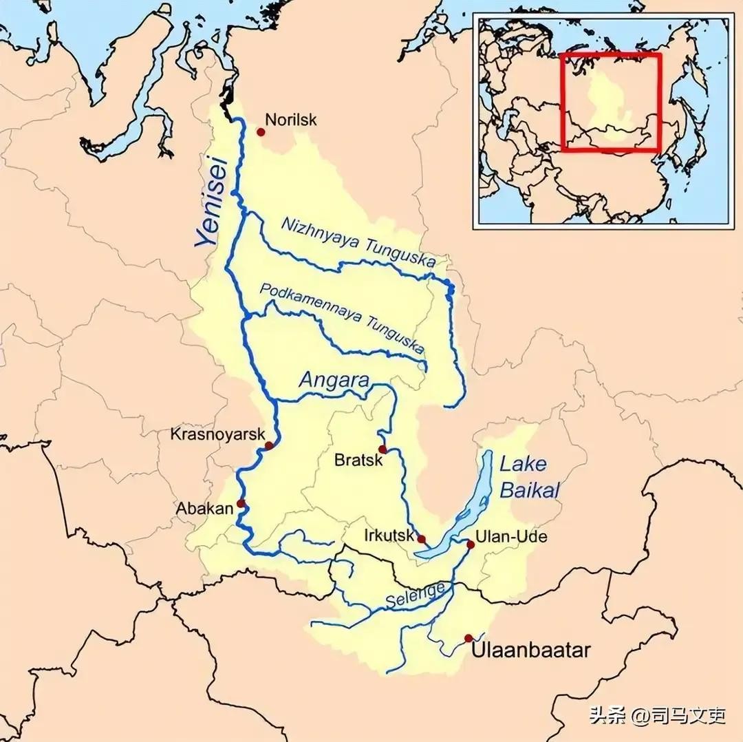 图30,鄂毕河、叶尼塞河、勒拿河、贝加尔湖示意图简图