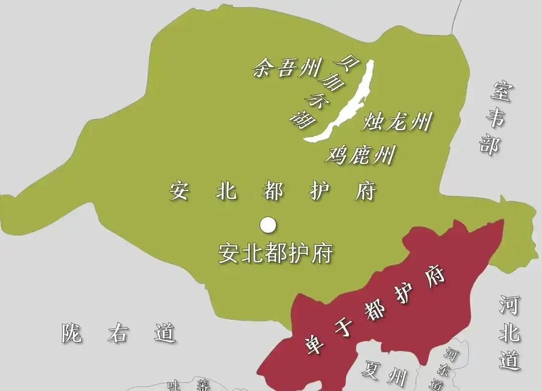 图61,唐朝时,贝加尔湖属于安北都护府管辖。