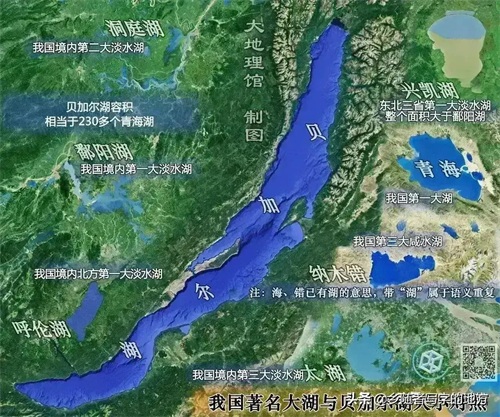 图69,贝加尔湖与中国境内各个湖泊对比。