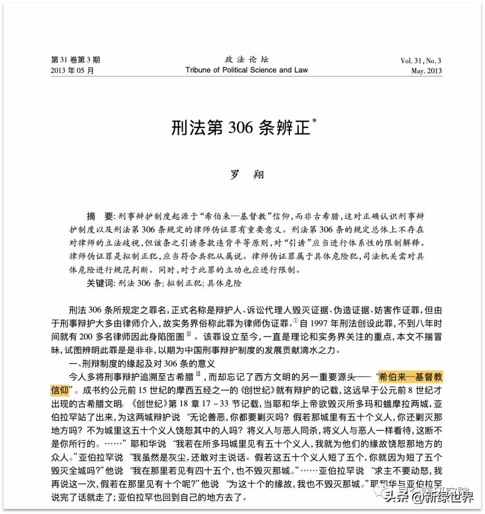 罗翔这篇文章的最后一句话是:“只有当越来越多的律师投身先知亚伯拉罕所开创的伟大事业,法治中国的梦想才能成为现实。”