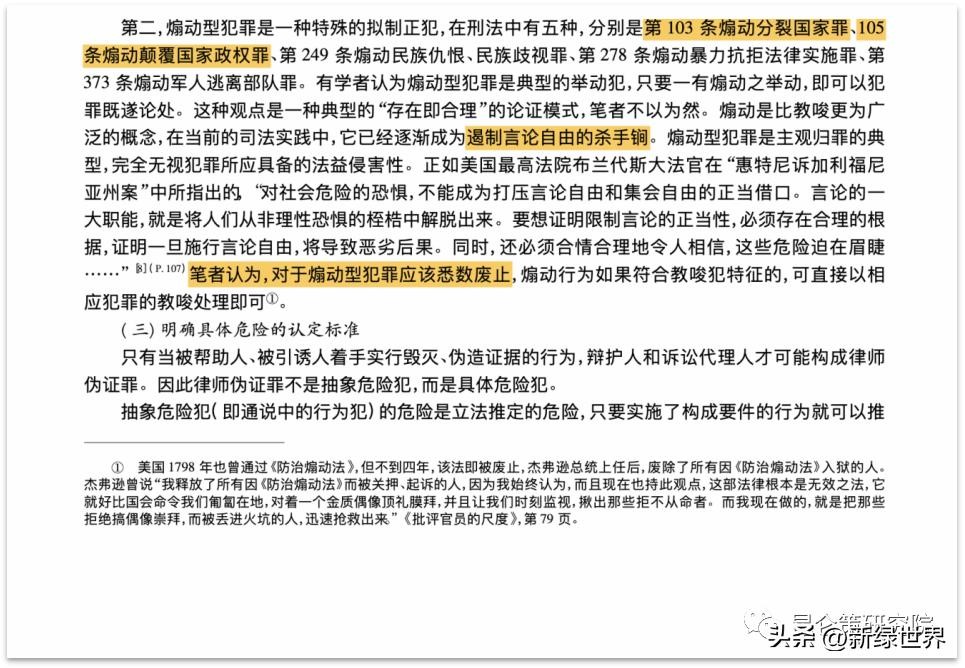 我在之前的文章《罗翔的变脸和“大法党”的操守》里提到罗翔一直鼓吹废除寻衅滋事罪,其实他要废的中国刑法远远不止这一条。罗翔在2013年《政法论坛》第3期上发表的文章《刑法第306条辨正》还主张废除包括《刑法》第103条“煽动分裂国家罪”和第105条“煽动颠覆国家政权罪”在内的所有的“煽动型犯罪”,理由是他认为这些罪是“遏制言论自由的杀手锏”。