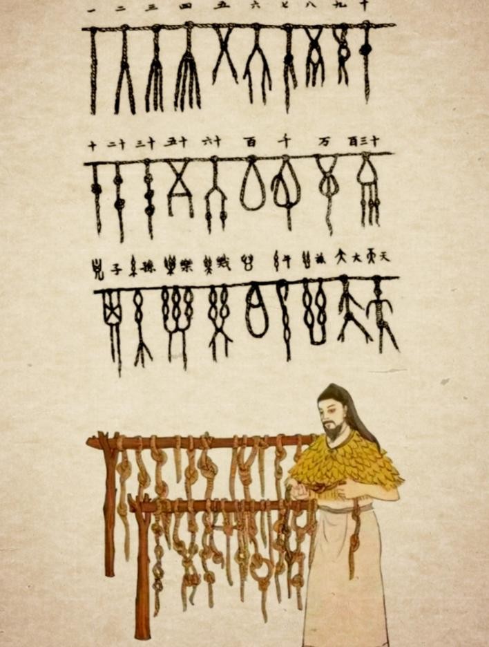 据《庄子·胠箧篇》记载,神农氏时代“民结绳而用之”,大到部落战争,小到猎物分配,皆系于一绳之上。