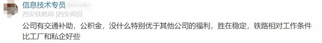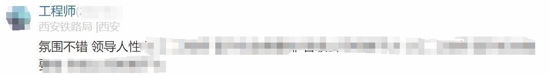 西安铁路局员工原话:公司的工作节奏相对比较轻松,没有突发事件一般下班比较准时,周末视情况有事情的时候需要加班