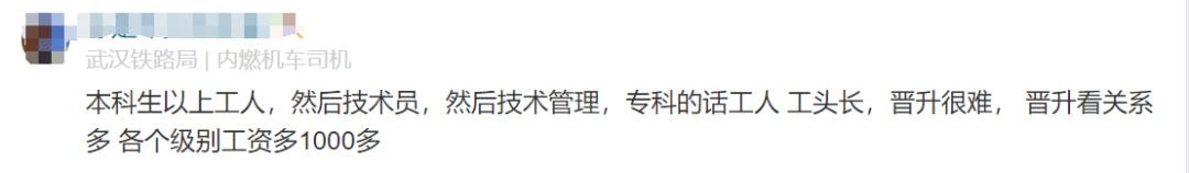 西安铁路局员工原话:本科生以上工人,然后技术员,然后技术管理,专科的话工人 工头长,晋升很难, 晋升看关系多 各个级别工资多1000多
