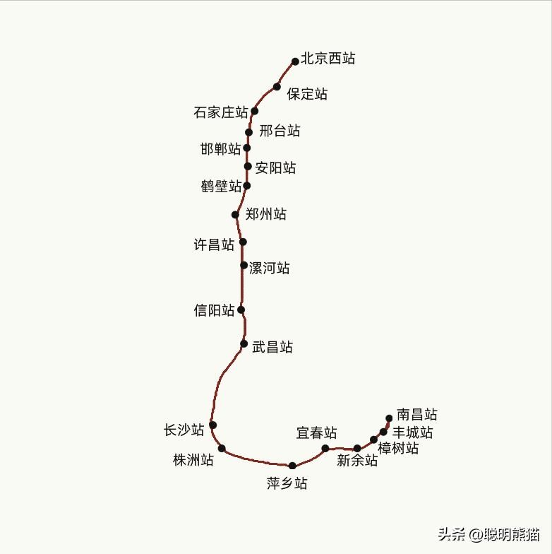 综上所述,本次列车全程运行2006千米,用时21小时25分,平均速度93.6660千米/小时。如果减去列车停靠车站104分钟,列车平均速度约101.9160千米/小时,列车途经北京市、河北省、河南省、湖北省、湖南省、江西省等六省市,列车停靠北京西站、保定站、石家庄站、邢台站、邯郸站、安阳站、鹤壁站、郑州站、许昌站、漯河站、信阳站、武昌站、长沙站、株洲站、醴陵站、萍乡站、宜春站、新余站、樟树站、丰城站、南昌站等二十一座车站