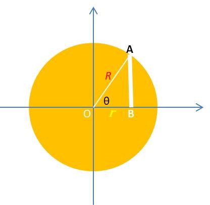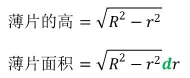 假设 圆的半径为 R,圆心到薄片的距离为r,薄片的厚度为dr,角度为θ