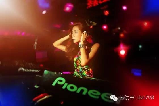 背景光以夜店环境光为主,五彩的射灯开启后非常炫目,拍摄主场地定在舞池正前方的DJ 台,我觉得这个地方最适合拍摄,有前景、有道具、空间也足够,比较有利于模特的发挥,背景选择酒吧里彩灯比较丰富的那一面做背景光。