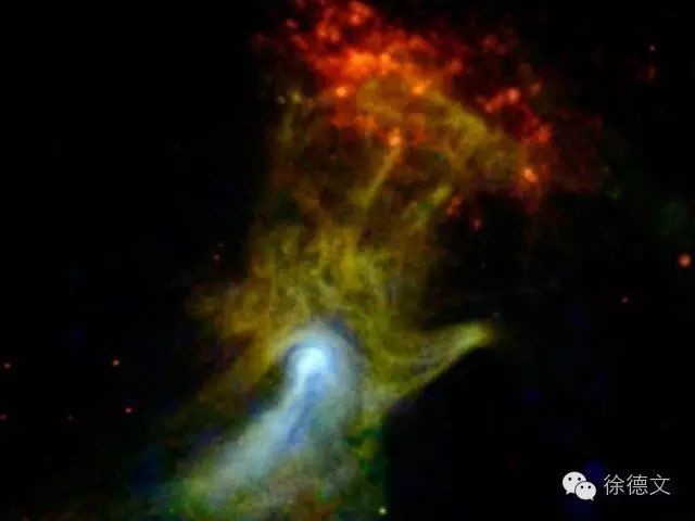 一颗超新星爆发后的残骸,围绕在脉冲星周围的星云,像夜空中伸出的一只巨手,在恐怖中挣扎。