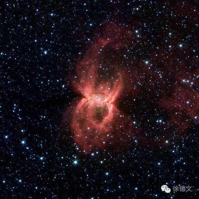 红色的蜘蛛是我们见过的最大的黑寡妇,不过别担心, 它不会咬人,只是一些星际气体和尘埃云。人们为什么要用寡妇或黑寡妇这个词呢?对那些已经不幸的女人,似乎太不公平了吧?