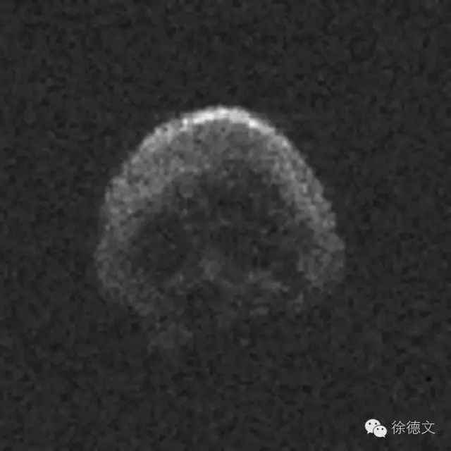 看了前面那些,压力太大了,终于有一个小家伙了,这是小行星2015 TB145的雷达图像,像个骷髅头,可能是一颗彗星。