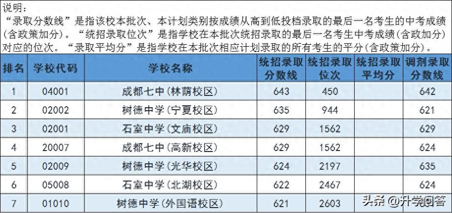 9月初的时候小编发过一篇“2024中考后成都高中大排名,排在前五十的有哪些?2025家长参考!”依据2024年的高中统招录取分数线,列出了成都市2024年统招分数线排名在前五十的学校,一共将其划分了五个梯队,没看过的朋友们可以点进去看看,一个学校到底好不好,光看统招分数线这一个数据是不准确的,还需要综合考虑学校近几年的录取平均分、录取位次、高考升学率等等。