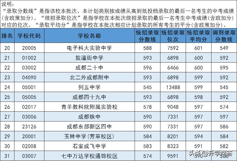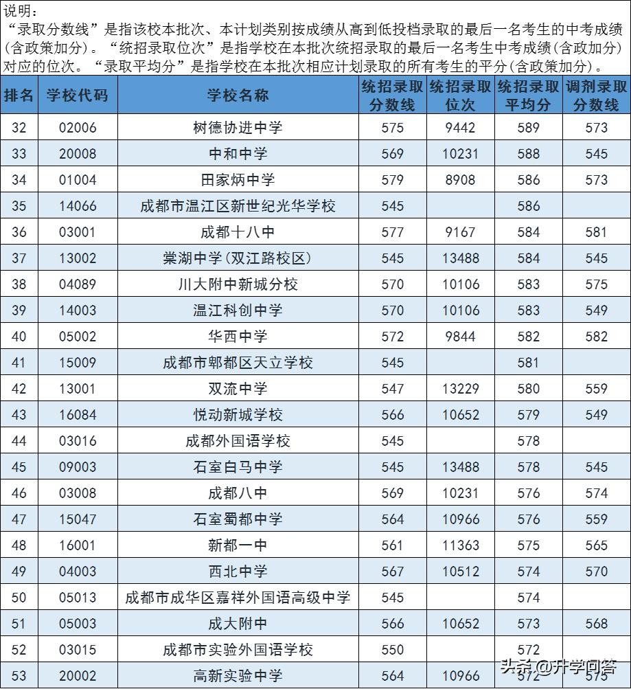 以下是2024年最新成都高中录取平均分排名汇总表: