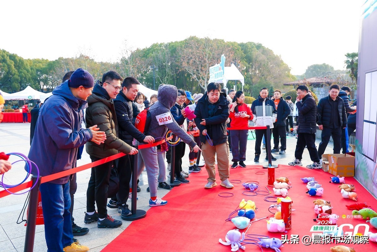 此次活动特别融合了亲子趣味跑步的特点,意在通过健康运动的方式,增进家庭感情,倡导健康生活方式,让父母与孩子一起感受充满活力与欢乐的亲子时光。为了凸显本次活动的欢乐氛围,提升活动的趣味性,苏宁易购打造了全长5公里的缤纷跑道,途经多个特色活动点位,例如画画、套圈等,并增设了趣味横生的打卡区域。